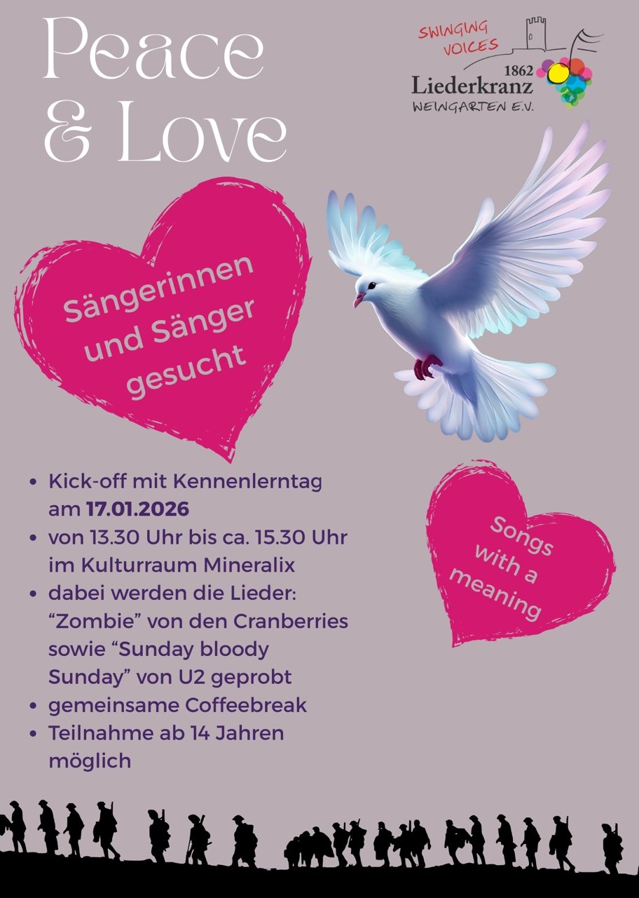 Das Kneipensing-Team des Liederkranz Weingarten bedankt sich bei der Weinmanufaktur Weingarten für die Möglichkeit, Gesang und Freude zur Weingartener Bevölkerung zu bringen und freut sich natürlich auch über interessierte Sänger und Sängerinnen in einer unserer Chorgruppen.