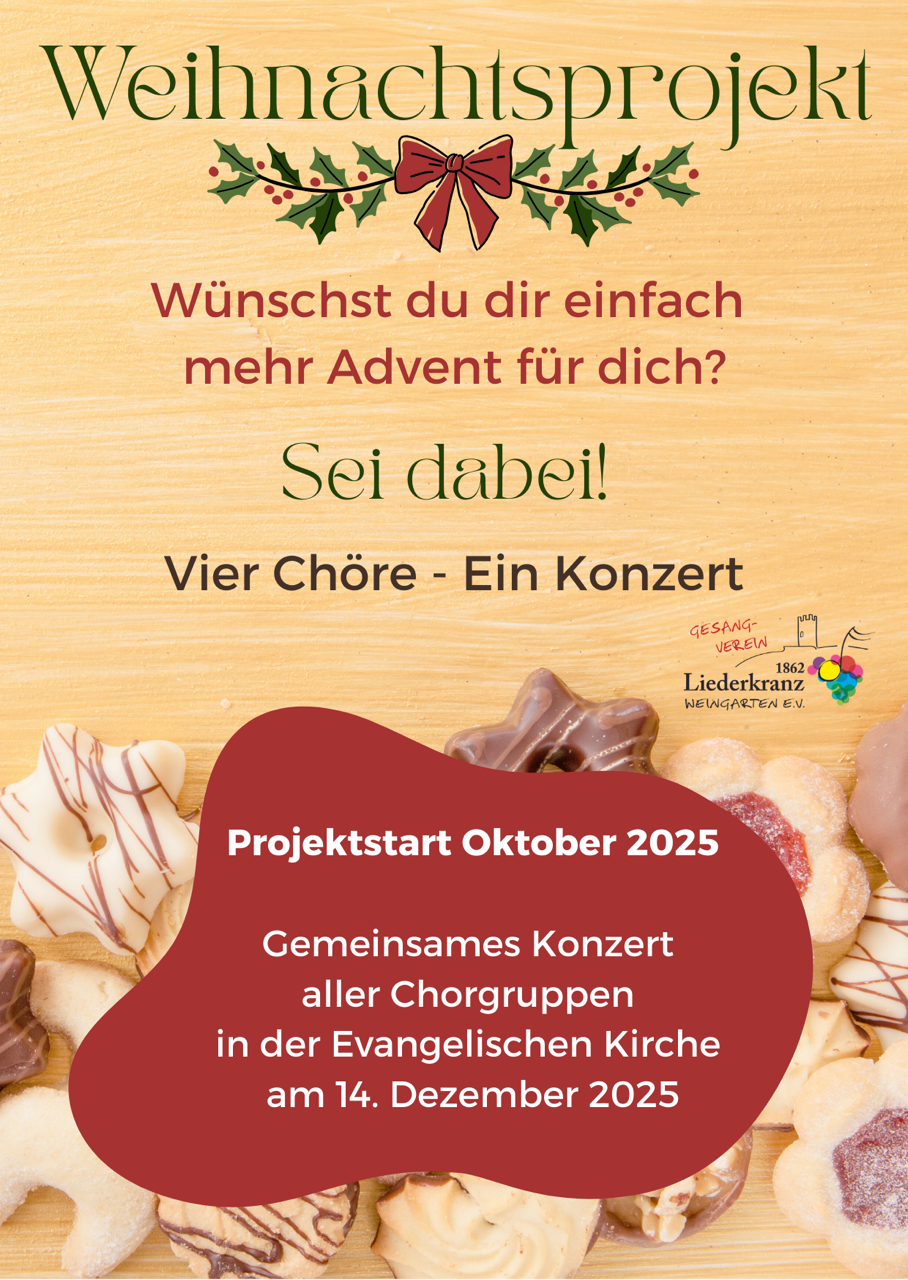 Das Projekt beginnt ab Oktober 2025 und endet mit dem gemeinsamen Adventskonzert am 14. Dezember 2025. Alle vier Chorgruppen sind offen für Sängerinnen und Sänger, egal, ob diese schon Chorerfahrung haben oder nicht.